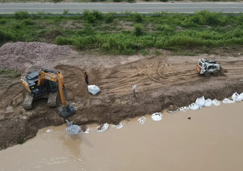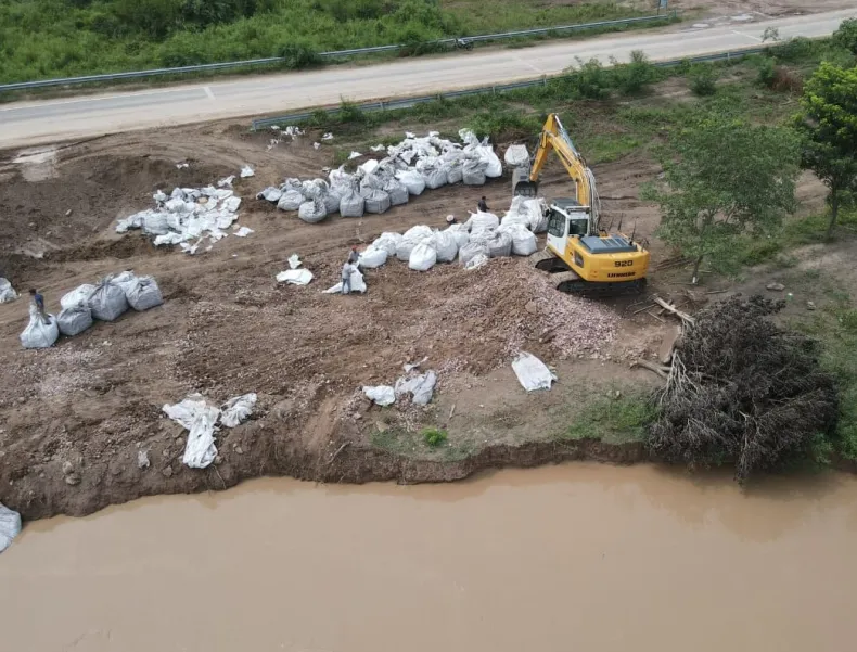 "Hasta el momento, ya se colocaron mil bolsas con piedras y tierra -cada una de más de mil kilogramos- para contener el avance del río. Durante el fin de semana comenzarán a colocarse otras dos mil bolsas más", agregó.