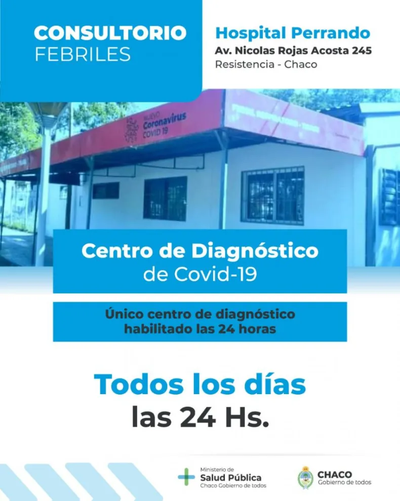 Asimismo, anunciaron que el único Centro de Diagnóstico que funcionará durante las 24 horas será el que se encuentra en el Consultorio de Febriles del hospital "Julio. C Perrando" sobre la avenida Nicolás Rojas Acosta 245.