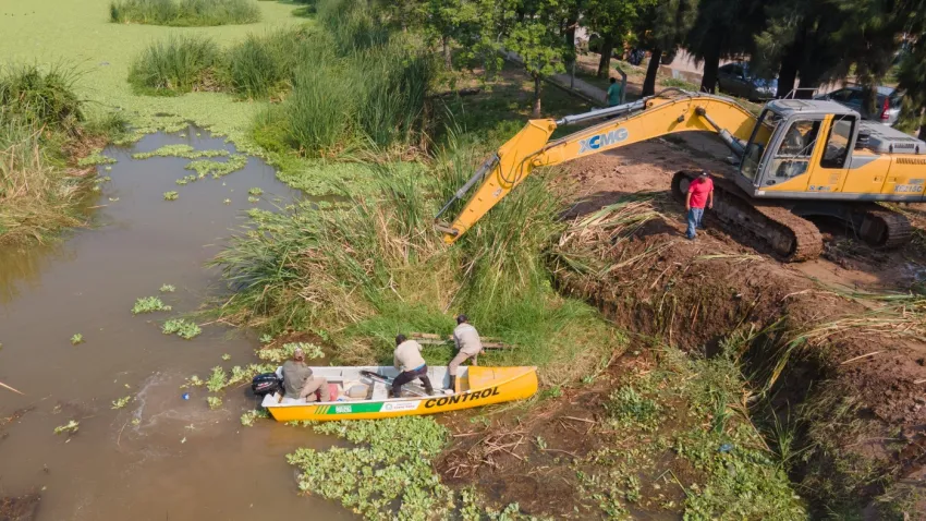 La Secretaría de Servicios Públicos del municipio se encuentra llevando adelante la limpieza del lado norte de la represa ubicada en el Parque Temático Ciudad de los Niños.