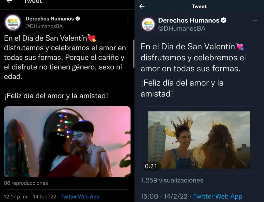 San Valentín: la cuenta de DDHH de CABA realizó un posteo que generó críticas y luego fue borrado