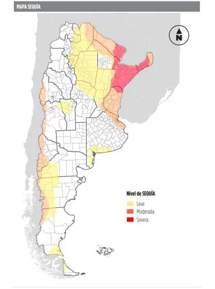 Organismos oficiales diseñaron un mapa del país con el efecto de la sequía en las regiones productivas durante el mes de enero y basado en la recopilación de datos al 11 de febrero. El panorama más complicado sigue siendo el NEA. El informe concluye que hay más de 10 millones de cabezas bovinas amenazadas y casi 2 millones de hectáreas de cultivos que ya han sufrido daños severos.