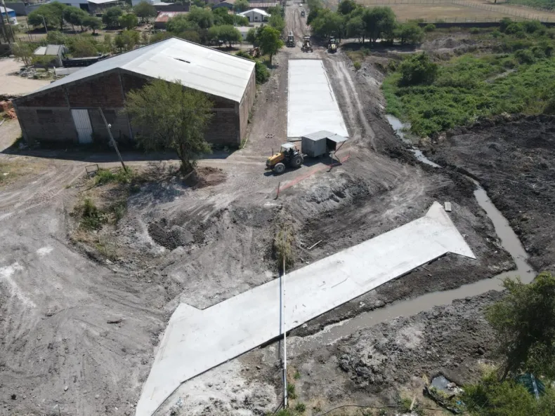 Bajo la inspección técnica del ingeniero Javier Gergoff, la obra se desarrolla en dos frentes de trabajos, por un lado, se avanza en la construcción de la alcantarilla necesaria para garantizar la óptima adecuación hidráulica, y sobre la Calle Nahuel Huapi se finalizó la alcantarilla de 25 metros de ancho y ya se ejecutan las primeras cuadras de pavimento.