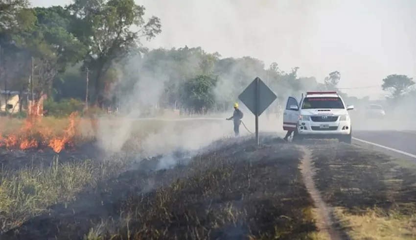 Los incendios avanzaron rápidamente al margen de la Ruta Nacional N°11, y bordearon los limites de Margarita Belén. Una cuadrilla de bomberos trabajó en el sector, a pesar de que el intenso calor y el viento hicieron crecer y extender las llamas del cordón.