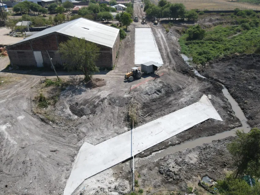 Bajo la inspección técnica de Javier Gergoff la obra se desarrolla en dos frentes de trabajos: sobre la calle Nahuel Huapi se terminó la construcción de una alcantarilla de 25 metros de ancho y ya se ejecutan las primeras cuadras de pavimento.