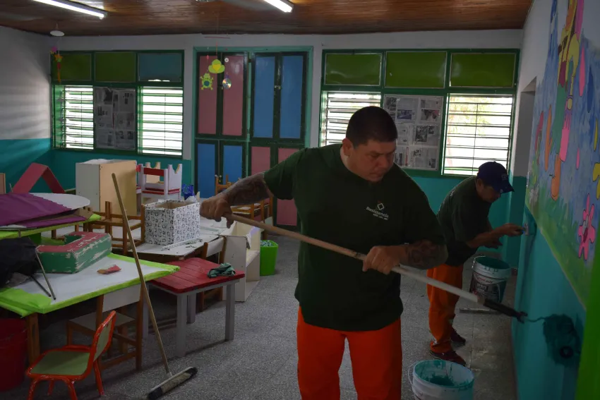 El Municipio de Resistencia sigue ejecutando el Programa Esfuerzo Compartido para beneficiar a instituciones de Resistencia en materia de infraestructura. En esta oportunidad trabajadores municipales realizaron obras de refacción y pintura en el Jardín Materno Infantil Nº 136 "Mempo Giardinelli" de Villa Don Alberto.