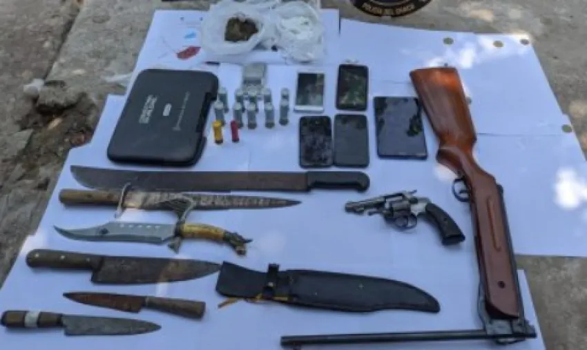 Durante el mismo los uniformados incautaron un total de 89,5 gramos de cocaína, 138 gramos de marihuana, un revólver calibre 32, un rifle de aire comprimido y 12 cartuchos. Además, secuestraron un automóvil Chevrolet Corsa, 5 cuchillos, un machete, 5 celulares y una computadora.