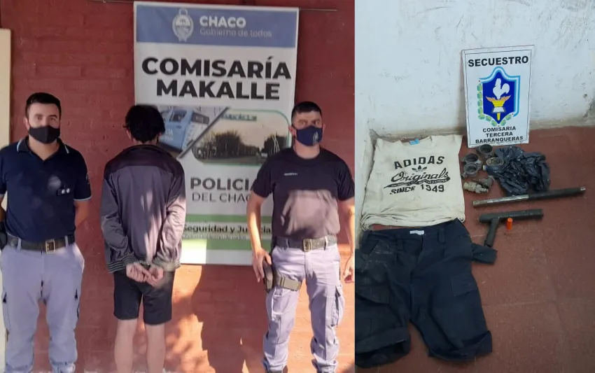 Acto seguido los agentes llegaron al lugar y observaron al sujeto cometiendo el ilícito, En consecuencia, al notar la presencia policial el mismo intentó huir, y a los pocos metros sacó de una bolsa de plástico negra un arma de fabricación casera tipo tumbera y la accionó contra los uniformados.