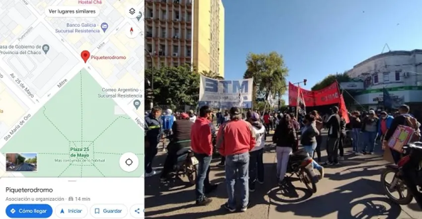 Un vecino de Resistencia agregó el "Piqueterodromo" a Google Maps en la esquina de las calles Marcelo T. de Alvear y Mitre, frente a Casa de Gobierno y la Plaza 25 de Mayo, zona que es famosa por las constantes manifestaciones que allí se producen y que entorpecen el tránsito.