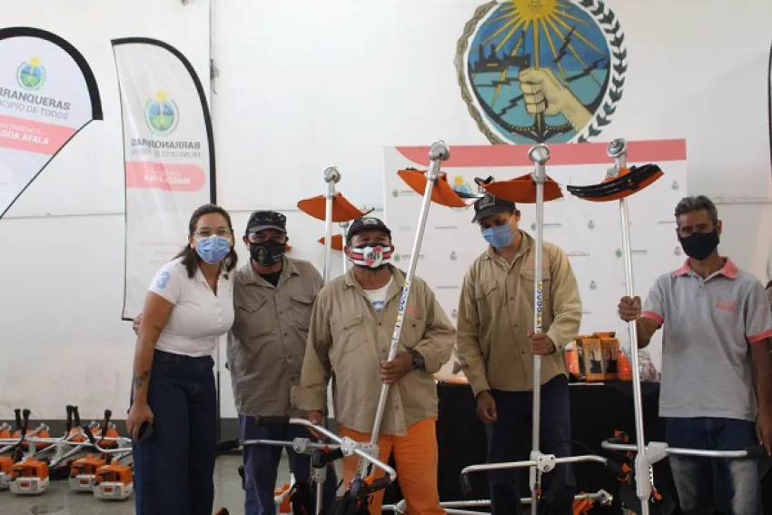 En la tarde del viernes, la intendenta de Barranqueras, Magda Ayala, hizo entrega de 20 motoguadañas, junto con los accesorios e insumos necesarios para su funcionamiento, al equipo de desmalezado de la Secretaría de Obra y Servicios Públicos del Municipio y a trabajadores de la Secretaría de Personas con Discapacidad.