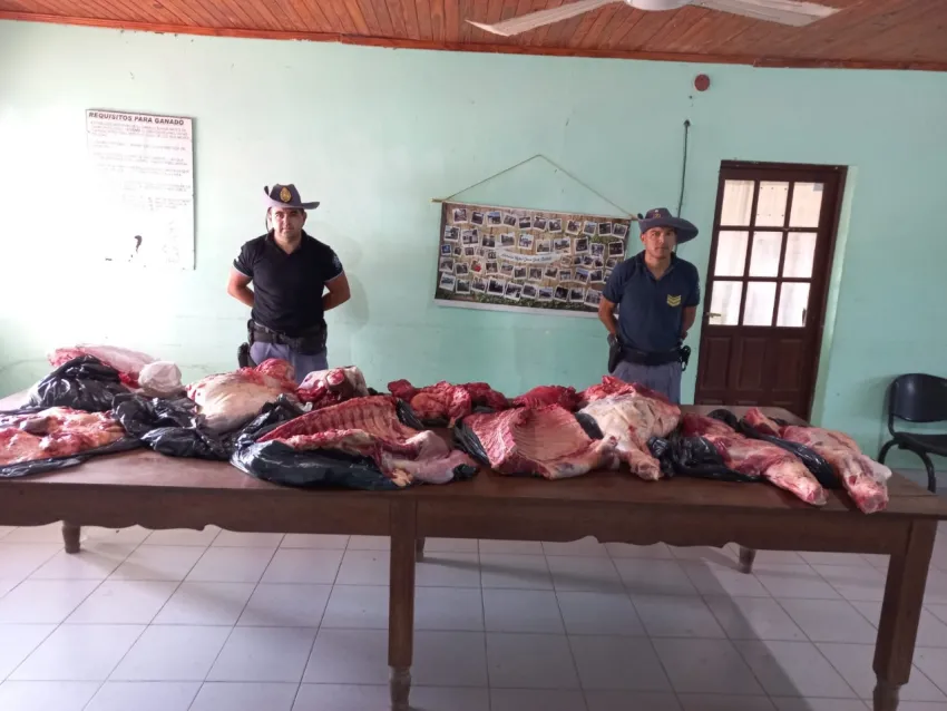 Pasada las 10, el personal de Seguridad Rural se apostó en un camino vecinal del Paraje Colonia 44 donde montó un operativo tendiente a desarticular los transportes ilegales. Es así que demoraron a un ciudadano que guiaba una camioneta, la cual contenía en su parte posterior ocho bolsas de nylon. Su interior contenía carne faenada sin guía ni cadena de frío.