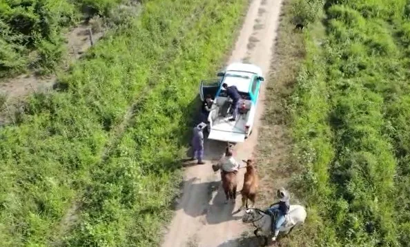 Los uniformados recibieron la alerta debido a que personas desconocidas sacaron un animal vacuno de un campo y lo estaban llevando por arreo a caballo.