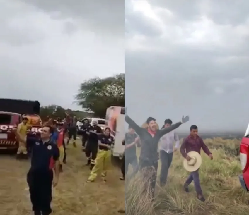Ante esta situación los bomberos y brigadistas que todavía trabajan en los focos de incendios festejaron la ansiada lluvia.