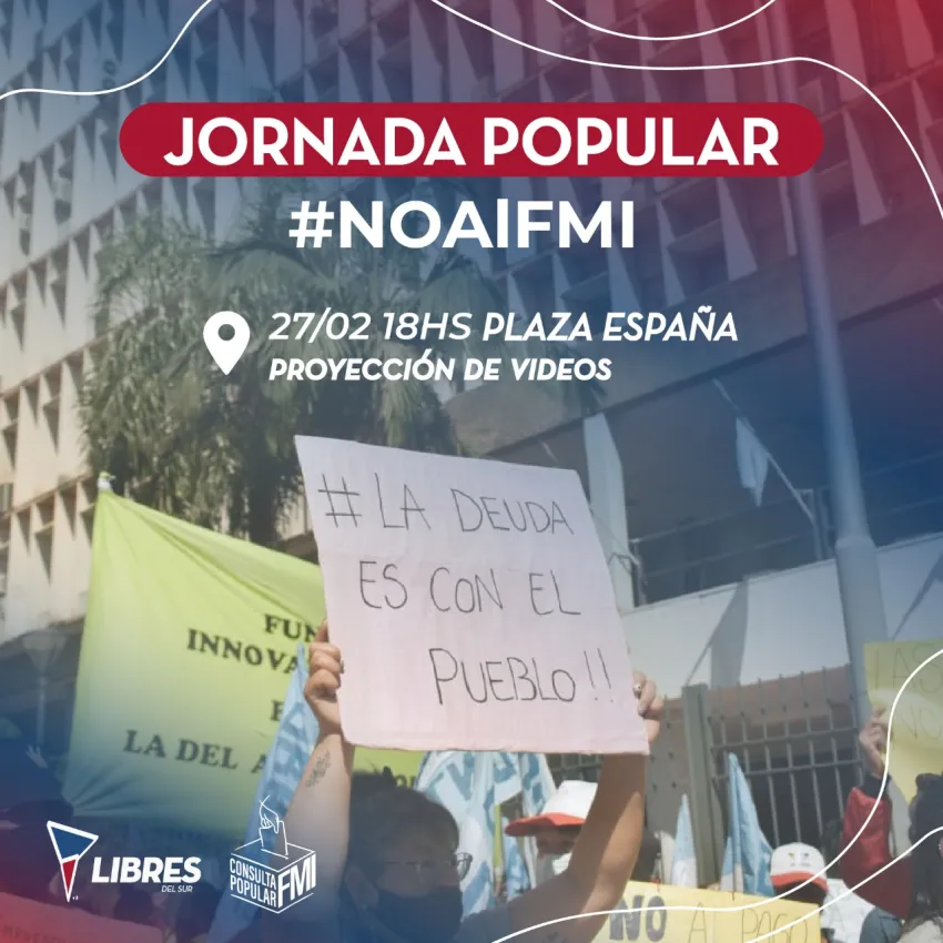 Este domingo 27 de febrero, a partir de las 18 horas, y en la Plaza España de la ciudad de Resistencia se llevará a cabo una jornada de concientización que tendrá como temática principal el acuerdo que pretende llevar adelante el Gobierno nacional presidido por Alberto Fernández con el FMI.