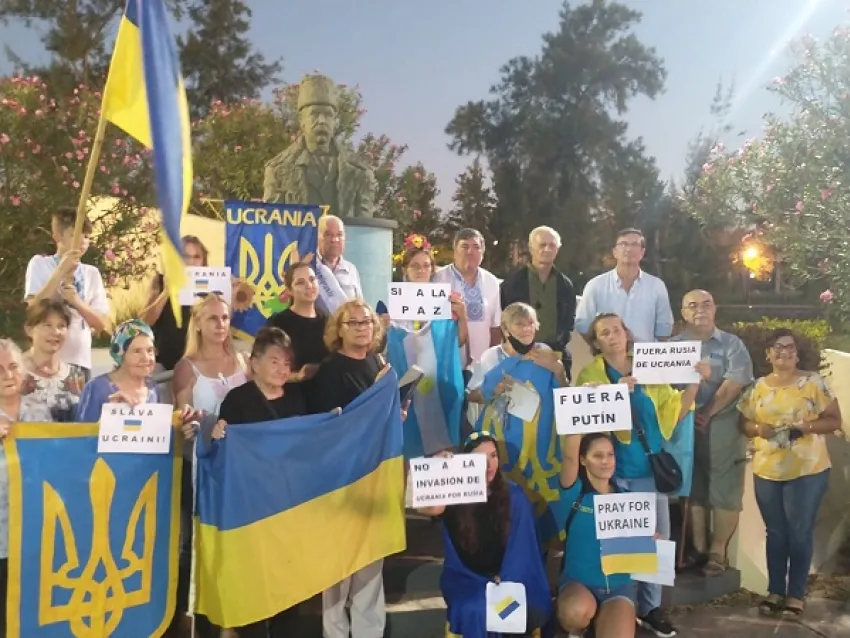 La comisión Directiva de la Comunidad Ucraniana se reunió en la plazoleta Taras Shevchenko, donde se entonaron los himnos argentino y ucraniano, se hizo un minuto de silencio y se convocó a todos los compatriotas y descendientes de ucranianos a embanderar sus casas.