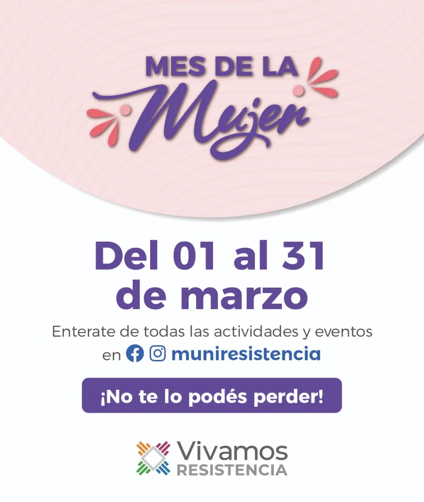 El Municipio de Resistencia iniciará este martes las actividades por el Mes de la Mujer, cuyo Día Internacional se conmemora el 8 de marzo, con una serie de eventos a desarrollarse en distintos sectores de la ciudad. Con homenajes, charlas, talleres y recitales, entre otros, marzo tiene una variada agenda con acceso libre y gratuito. El cronograma es el que a continuación se detalla: