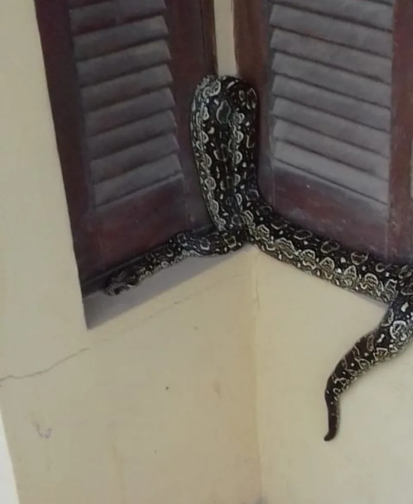 Susto y pánico en Pinedo: una mujer encontró a una boa en la ventana de su casa