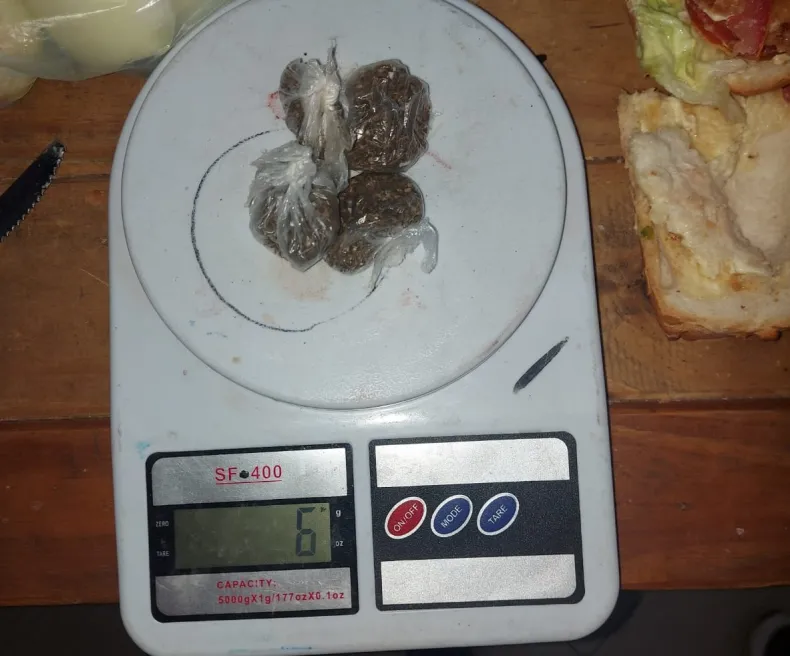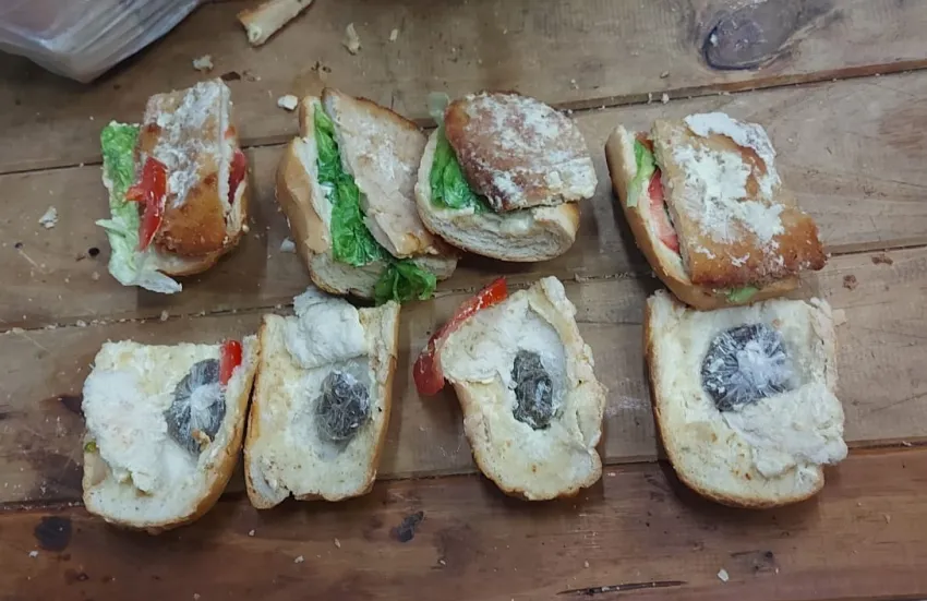 Dentro del táper había cuatro sándwiches de milanesa compuestos por dos rodajas de pan, lechuga, tomate, mayonesa y el ingrediente extra era una bocha de marihuana en cada uno de los emparedados. En total se decomisaron 6 gramos de droga.