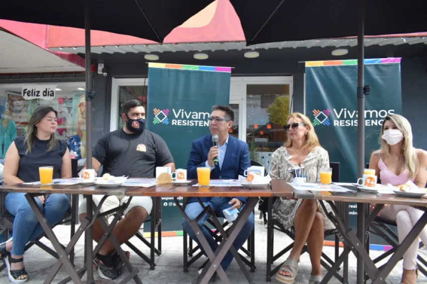 "Seguimos apoyando a los emprendedores locales, que sin duda en los últimos años fueron de los más afectados por la pandemia", expresó el intendente desde la confitería Mi Lugar, al que asistieron la concejala Katia Blanc; la presidenta de la Asociación de Hoteles, Restaurantes, Bares, Confiterías y Afines del Chaco, Verónica Mazzaroli; la subsecretaria municipal de Turismo, Virginia Zacarías y el anfitrión, Rodrigo Vaquer.
