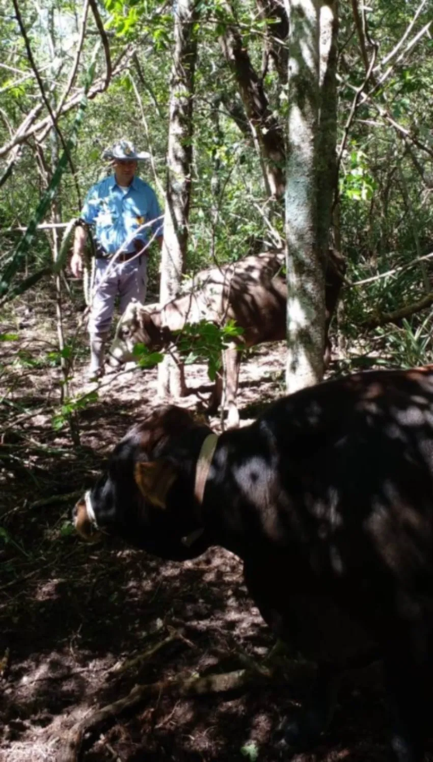 La Policía Rural se dividió en dos grupos y realizaron el seguimiento de las huellas. Utilizaron dron para la vista aérea y luego de varias horas de recorridas sobre cañadas, esteros y montes, lograron encontrar a los dos animales tambeados en una zona de difícil acceso.