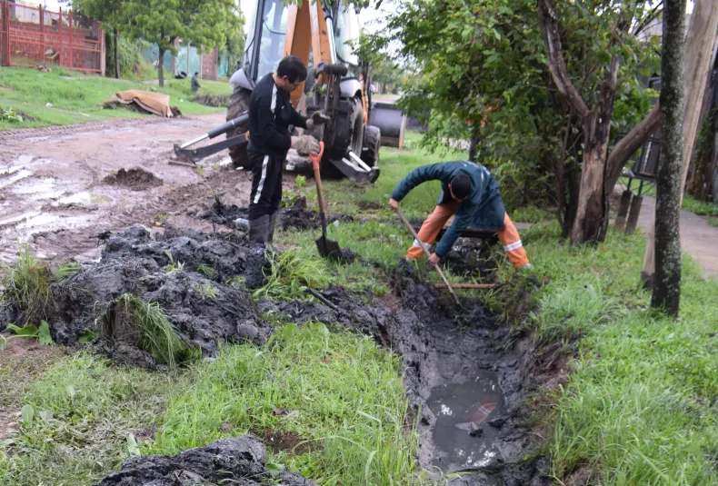 Así, mediante el uso de una retroexcavadora y de un tractor, quitaron los residuos que obstaculizaban en alcantarillas, cruces de calles y "puentes domiciliarios" e impedían el flujo de agua hacia el conducto central ubicado en la cercana avenida Alberdi.