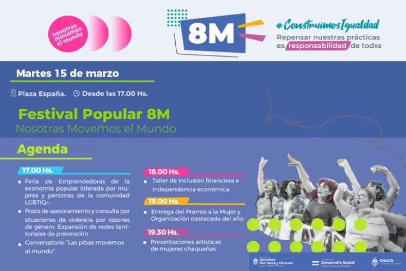 El Festival popular, abierto y gratuito, se desarrollará de 17 a 21 en la plaza España de Resistencia. Emprendedoras de la economía popular y de la comunidad LGBTIQ+ exhibirán sus producciones. También habrá una posta de asesoramiento y consulta por situaciones de violencia por razones de género y la presencia de integrantes de las redes de contención.