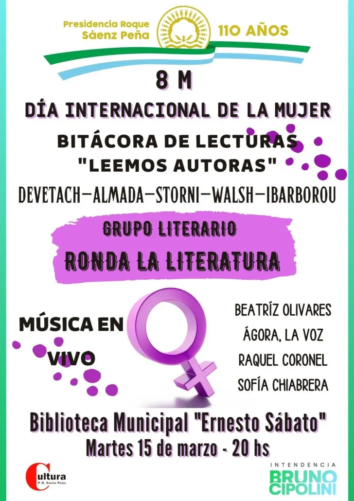 La invitación es en la parte exterior de la Biblioteca Municipal donde el grupo literario «Ronda la Literatura», leerá e interpelará textos de autoras consagradas como Laura Devetach, Selva Almada, Alfonsina, María Elena Walsh y Juana de Ibarborou, entre otras.