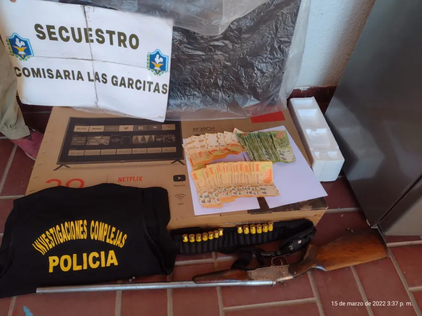 Continuando con tareas respectivas, se procedió a la aprehensión de S.G. de 26 años quien entregó una escopeta calibre 20 con cartuchos, que habría comprado también con la plata que su jefe denunció.