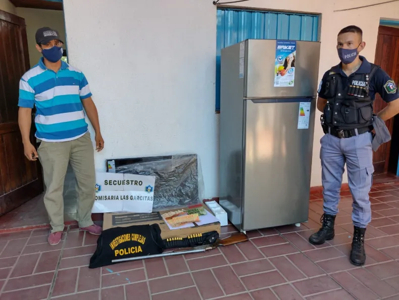 Es así que allanaron su vivienda y la Policía descubrió que el joven se había comprado varios artefactos con "dinero mal habido". Producto de la intervención policial, secuestraron en sus respectivas cajas y con facturas, una heladera, un Smart TV de 29 pulgadas y un ticket de compra de una casa de motocicletas.