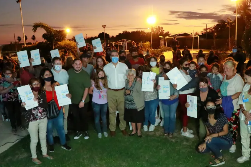 Junto a la ministra de desarrollo Social María Pía Chiacchio Cavana y el ministro de Planificación Economía e Infraestructura, Santiago Pérez Pons, el gobernador valoró: "Qué bueno es tener testimonios como los de ustedes, que nos han demostrado que son capaces de administrar los recursos, hacerlos rendir y resolver un problema que para muchas familias es una solución soñada y sentida".