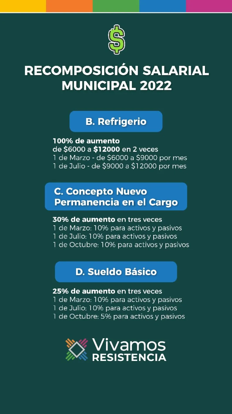- Sueldo básico va a tener un 25% de aumento durante el año. (10% en marzo, 10% desde julio y 5% en octubre)