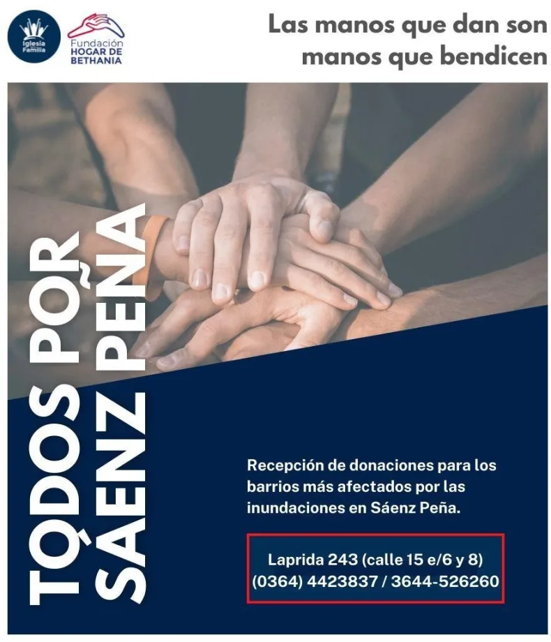 Luego de que este martes se registrarán aproximadamente unos 260 milímetros en la localidad de Sáenz Peña, la Iglesia de la Familia comenzó una campaña para recolectar donaciones para las familias que se vieron afectadas por las lluvias.