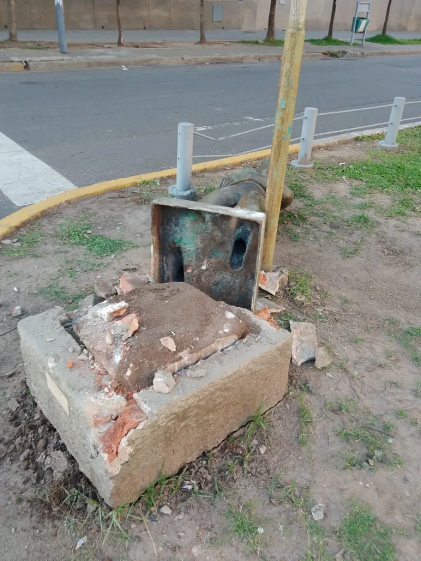 Esta mañana, alrededor de las 7 el conductor de una camioneta colisionó con la estatua que se encuentra en el parterre de la Avenida Alberdi. El impacto fue tal que provoco su caída.