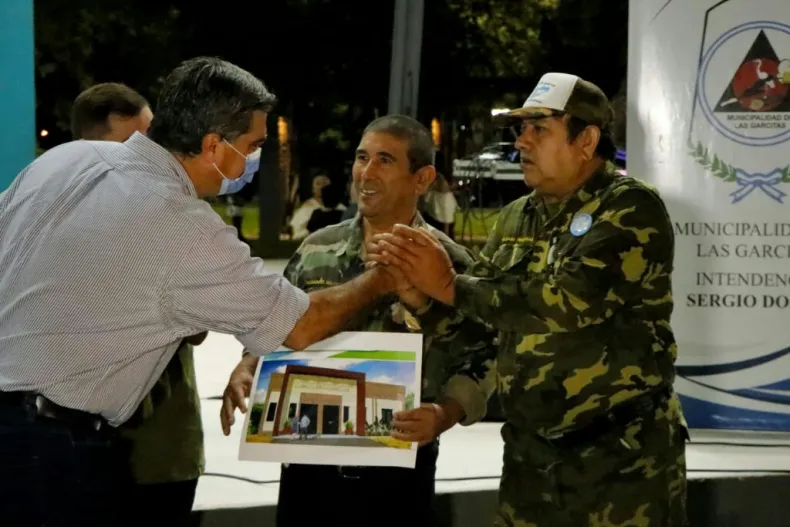 Este domingo en Las Garcitas, el gobernador Jorge Capitanich junto al intendente local, Sergio Dolce, inauguró la refacción integral de la Plaza Central de la localidad, obra que demandó una inversión total de $25.530.614,69. Además, Capitanich rubricó un convenio para la ampliación y refacción del Centro de Ex Combatientes de "Malvinas Argentinas"del municipio y el museo de la temática.