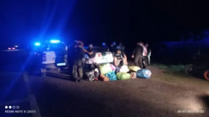 Por esta situación, se implementó otro control vehicular sobre la Ruta Nacional N° 89, pero el automovil volvió a evadirlo, por lo que se comenzó la persecución del vehículo. Finalmente, los efectivos lograron detener e identificar a las personas dentro del auto, a la altura del kilómetro 229 de la Ruta N°89.