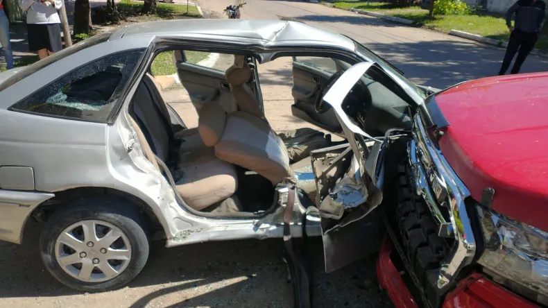 Durante la siesta de este jueves un automóvil y una camioneta fuero participes de un accidente de tránsito en la intersección de las calles Santa María de Oro y calle Comandante Fontana.