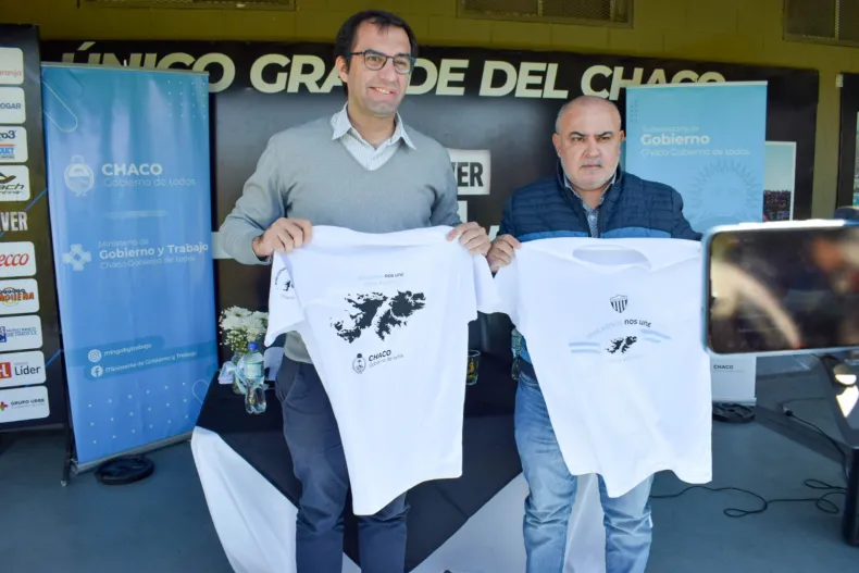 "A partir de mañana, Chaco For Ever llevará por todo el país esta camiseta con el logo de las Islas Malvinas y cada vez que dispute un partido, las llevaremos con orgullo en representación de todos nuestros veteranos", aseguró Gómez.