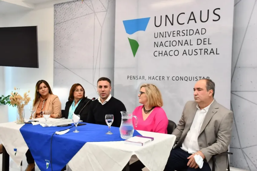 Hoy jueves 1 de abril, el rector de la Universidad Nacional del Chaco Austral (UNCAUS), Germán Oestmann, junto al secretario Administrativo, Manuel Ricardone, recibieron en la institución a la diputada Jessica Ayala y a la ministra del Superior Tribunal de Justicia de Neuquén, María Soledad Gennari, para dar una conferencia destinada a profesionales del Derecho.