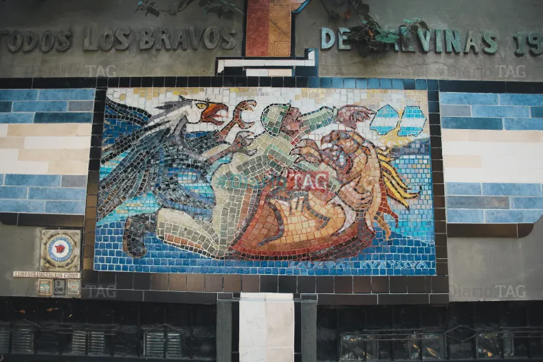 Otro es el caso del mural ubicado en avenida Paraguay 764, realizado con la técnica de mosaiquismo de la mano de Fernando Calzoni, dedicado a "todos los bravos de Malvinas", frase inmortalizada en la pared. Se inauguró en el año 2018.