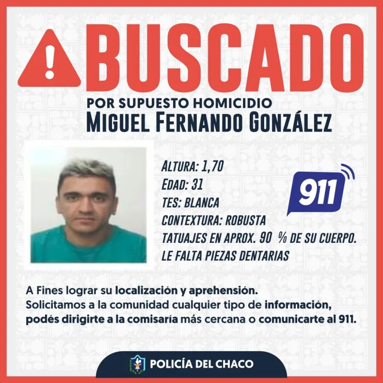La persona buscada se llama Miguel Fernando Gonzáles, tiene 31 años y se lo conoce bajo el apodo "Chupa chichi".