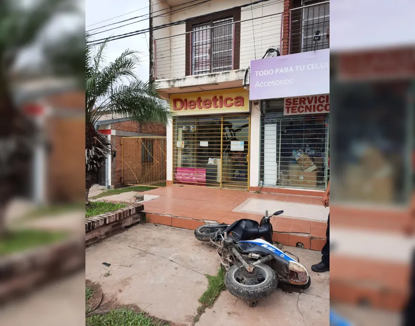 El sujeto había dejado estacionada una motocicleta Motomel Blitz Tuning 110cc en la vereda del local, y al momento de intentar escapar, la mujer lo tomó de la ropa recibiendo una pata que hizo que el hombre pierda el equilibrio y caiga.