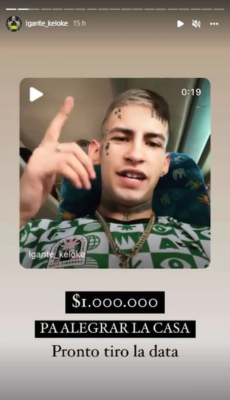 L-Gante anunció que quiere regalar $1 millón y sugirió a sus seguidores que lo usen: "Pa’ alegrar la casa"