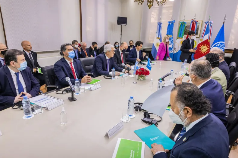 El gobernador Jorge Capitanich, junto a sus pares de Santiago del Estero, Gerardo Zamora, y de Santa Fe, Omar Perotti, se reunió con el director general de la Organización de las Naciones Unidas para la Alimentación y la Agricultura (FAO), Qu Dongyu, para establecer las bases de un convenio de cooperación y asistencia técnica para el desarrollo productivo de los Bajos Submeridionales.
