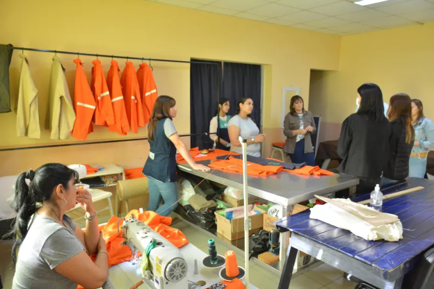 Los talleres se dedican a la confección de indumentaria de trabajo y prendas en tela denim, en articulación con el Programa Chacú.