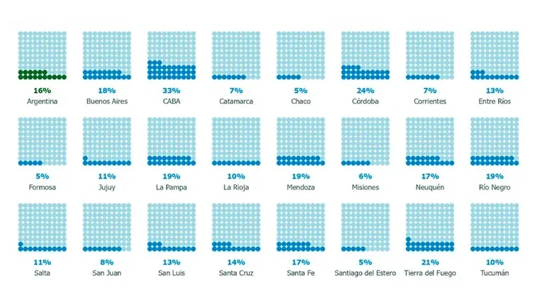 Así mismo, 16 de cada 100 estudiantes argentinos terminan con conocimientos satisfactorios. CABA (33%), Córdoba (24%) y Tierra del Fuego (21%) tiene el mejor porcentaje, mientras que Chaco, Santiago del Estero y Formosa los peores con 5%.
