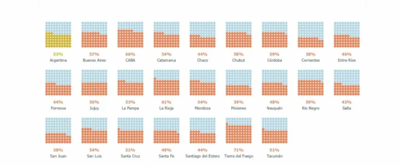 En lo que respecta a Argentina, el 53% de los alumnos finaliza en tiempo y forma, siendo Tierra del Fuego (71%), Buenos Aires (66%) y La Rioja (61%) las provincias con mejores números. Por otro lado, San Juan (38%), Corrientes (38%) y Misiones (39%), tienen los peores números.