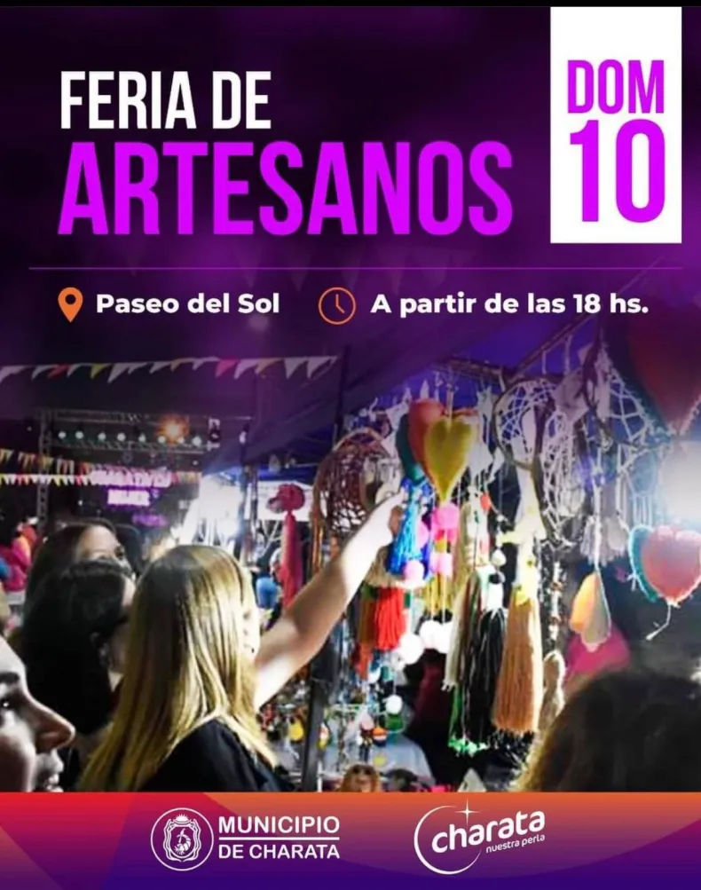 El Municipio de Charata informó que este sábado habrá una gran feria de artesanos en el Paseo del Sol.