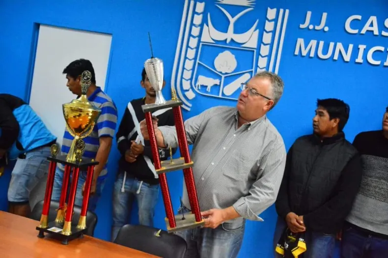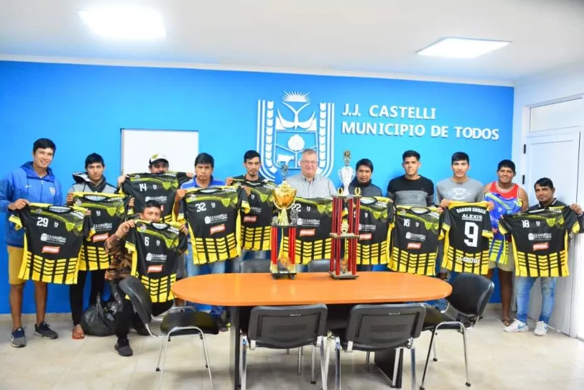El intendente de Juan José Castelli, Pio Oscar Sander, y el concejal, Laudino Soraire, recibieron a los ganadores del "Campeonato Comercial" que se realizó en el predio La Juana Azurduy. El campeón fue "Barrio Curishi".