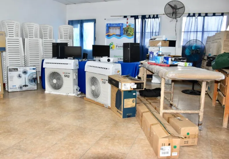 El objetivo es fortalecer y mejorar la funcionalidad del Centro Integrador Comunitario "Darío Montiel", ubicado en el Barrio 444 viviendas de la ciudad de Fontana. Entre los materiales e insumos entregados se encuentran: aire acondicionado, ventilador, computadoras, impresoras, camillas proyector y gazebos. Serán utilizados para las actividades que lleva adelante el C.I.C.