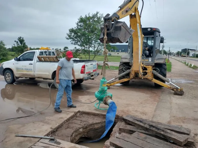En la mañana de este lunes, personal municipal de todas las áreas continúan con los trabajos de limpieza de canales a cielo abierto, desobturación de desagües pluviales y limpieza de alcantarillas para permitir el fácil y rápido escurrimiento de las aguas.