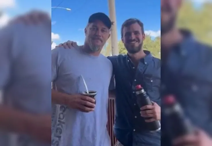 Patricia, que grabó la secuencia, le explicó en inglés, con mate en mano, que ellos no eran de aquella ciudad ni de aquel país. Fimmel mostró buena predisposición cuando lo invitaron a probar la infusión.